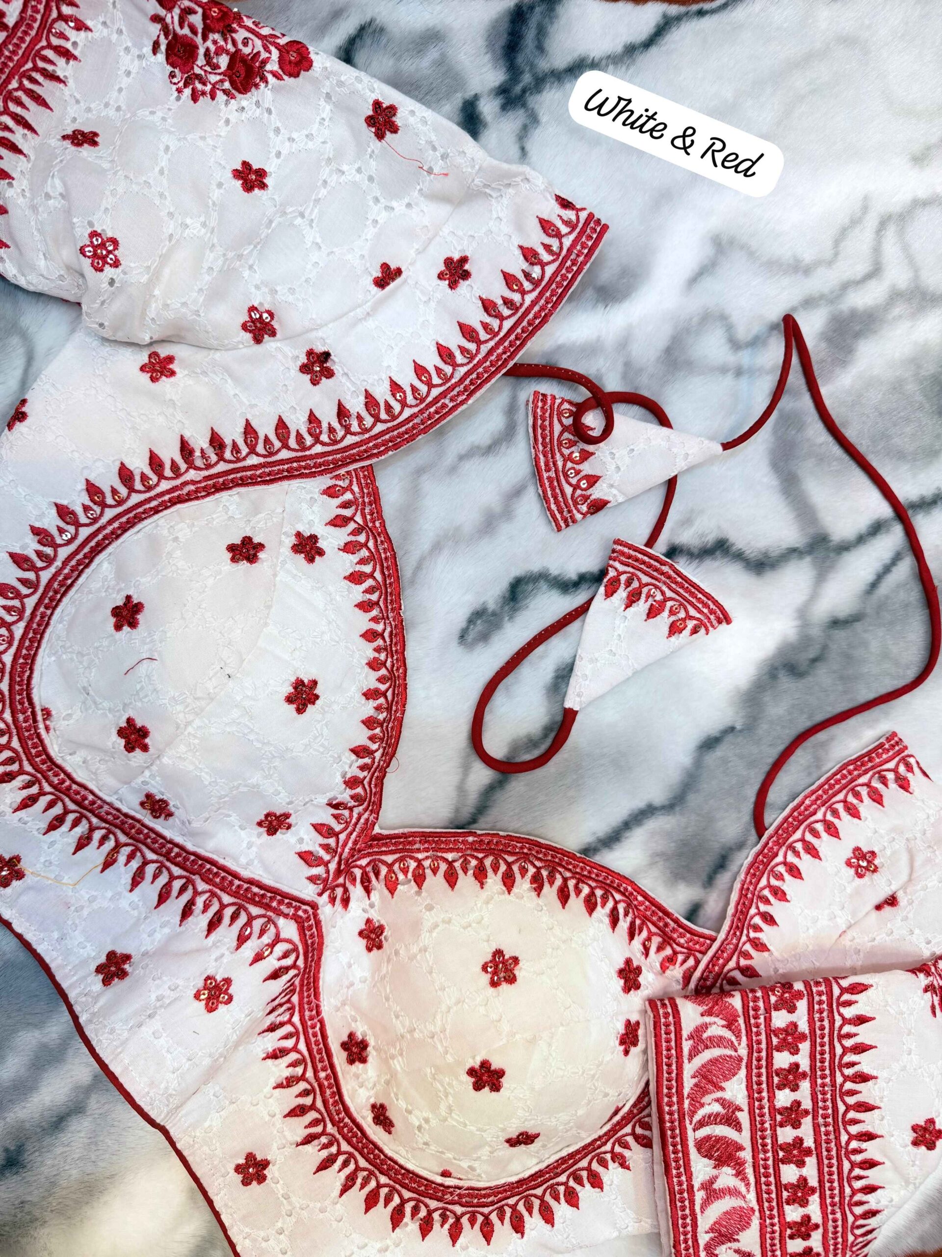 Make this Durga Puja unforgettable with our white and red combination cotton garment. Its stunning embroidery work and impeccable craftsmanship ensure youโll feel confident and festive. Donโt waitโorder now, and letโs ship this beauty to wherever you are. ๐โ๏ธ