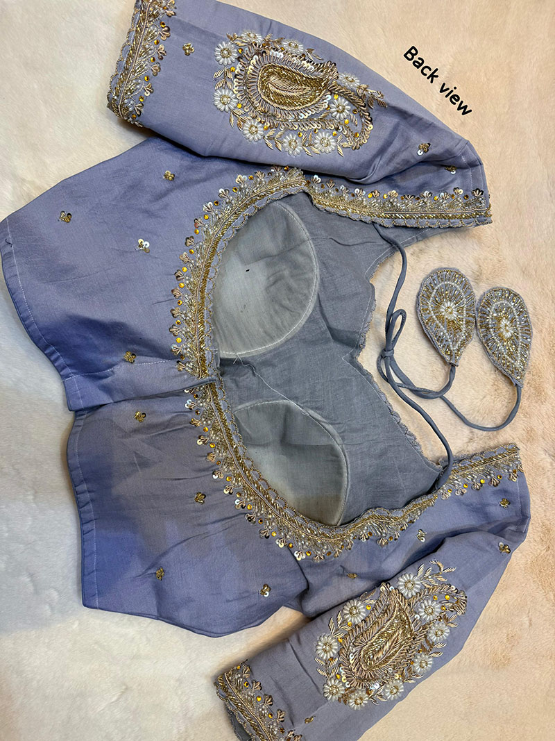Crafted with precision and love, this blouse exemplifies the art of pure handwork through its breathtaking Zardosi embroidery. Perfectly suited for those who cherish luxury and sophistication, this piece reflects the enduring allure of traditional craftsmanship blended seamlessly with modern sensibilities. Whether it’s a wedding, festive occasion, or an intimate gathering, this blouse makes you the highlight of every moment.